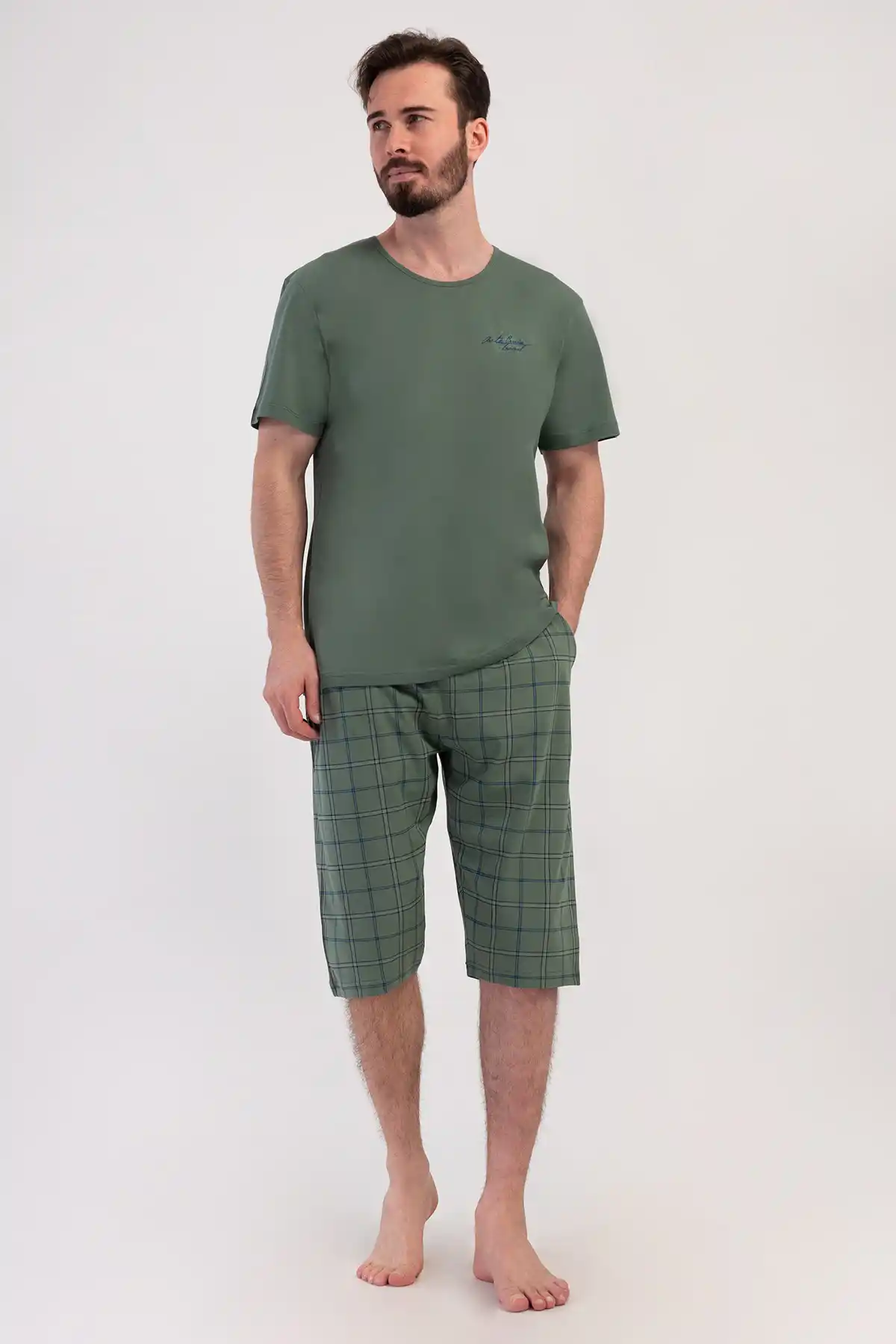 Erkek Süprem Haki Kısa Kollu Kareli Kapri Takım