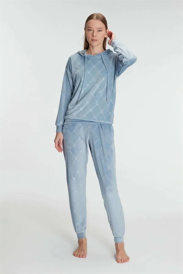 | Ürün Adı | Mavi Kapüşonlu Uzun Kollu Kadın Pijama Takımı |