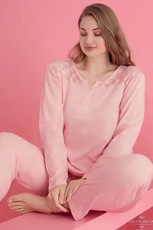 | Ürün Adı | Büyük Beden Pamuklu Dantel İşlemeli Uzun Kollu Pijama Takımı |