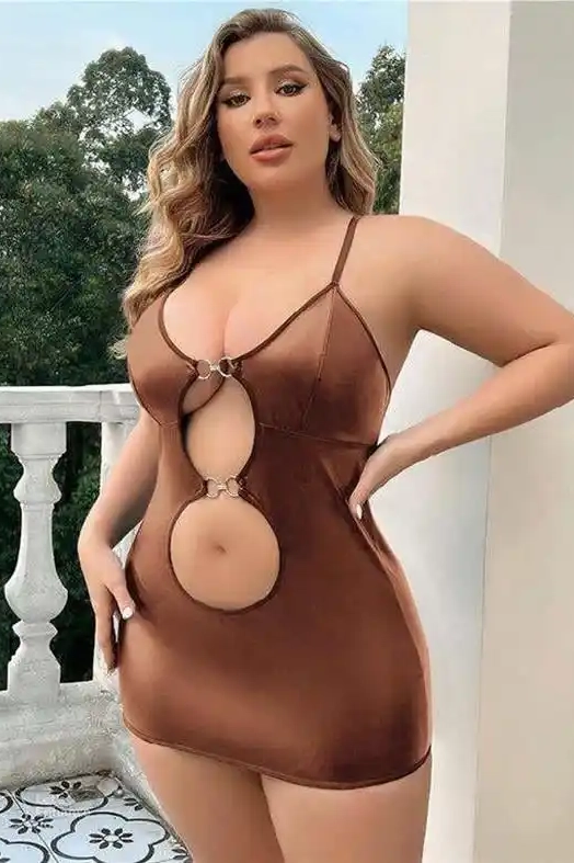 | Ürün Adı | Kahverengi Metal Halkalı İp Askılı Fantezi Elbise |
