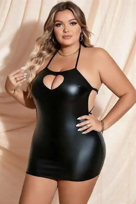 | Ürün Adı | Siyah Deri Halter Kalp Dekolteli Fantezi Büyük Beden Elbise |