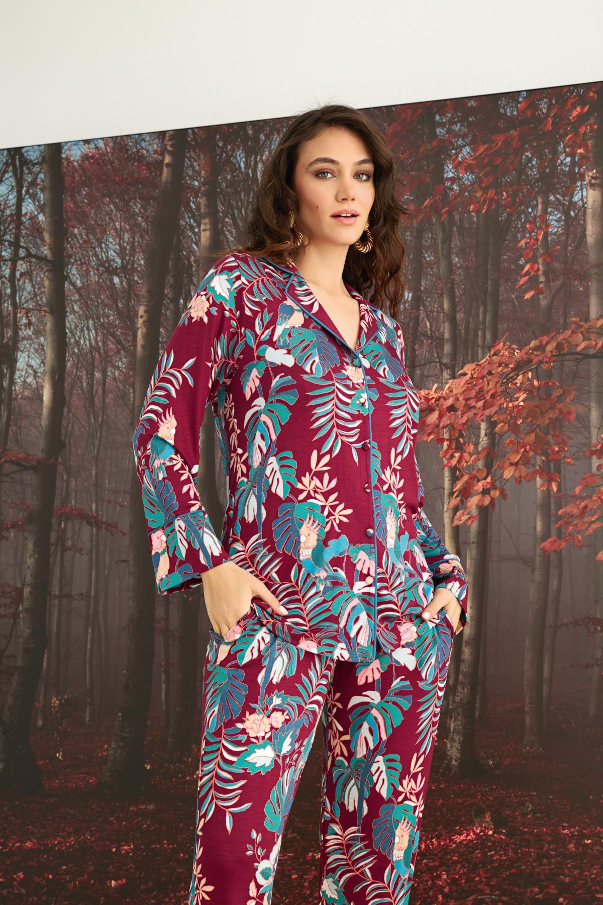 | Ürün Adı | Çiçek ve Yaprak Desenli Önü Düğmeli Pijama Takımı |