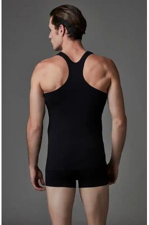 U Yaka Askılı Siyah Erkek Atlet