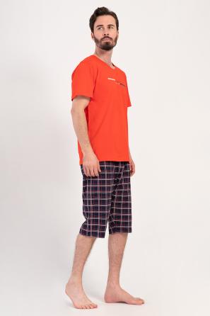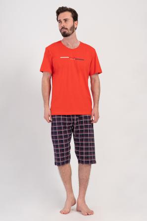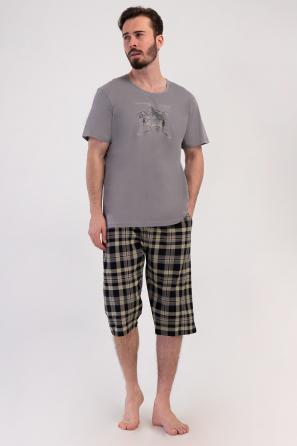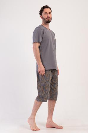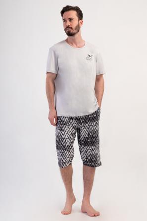 Erkek Suprem O Yaka Kısa Kol Cepli Desenli Kapri Takım