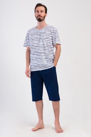 Erkek Suprem Çizgili O Yaka Kısa Kol Cepli Kapri Takım