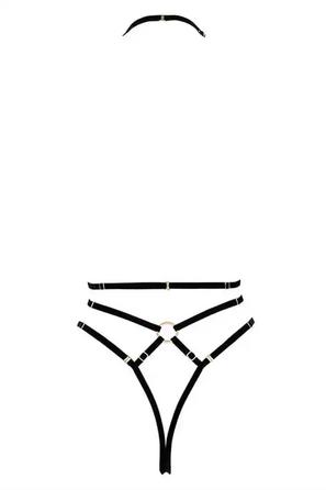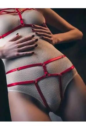 Harness deri kostüm, gövdeyi saran kayış sistemi, ayarlanabilir tokalar ve metal halkalarla şekillenen; stil ifadesi güçlü, geometrik çizgilere sahip bütünleşik bir üst–alt kayış mimarisidir. Esnek sentetik deri (vegan deri) veya cilalı derimsi yüzey, vücudu belirli noktalardan kavrarken yük dağılımını dengeleyen geniş–dar kayış kombinasyonlarıyla rahatlık sağlar. Modeller; omuzdan inen Y ve H askı düzenleri, bel çevresini çerçeveleyen korse benzeri kuşaklar ve uyluk bandı/ortez görünümlü bacak halkalarıyla grafik bir siluet kurar. Minimal düz hatlardan, çok kayışlı ve halkalı sofistike tasarımlara kadar uzanan skalada; gece stili, festival, fotoğraf çekimi, performans ve özel temaslı konseptlerde güçlü bir odak noktası sunar.