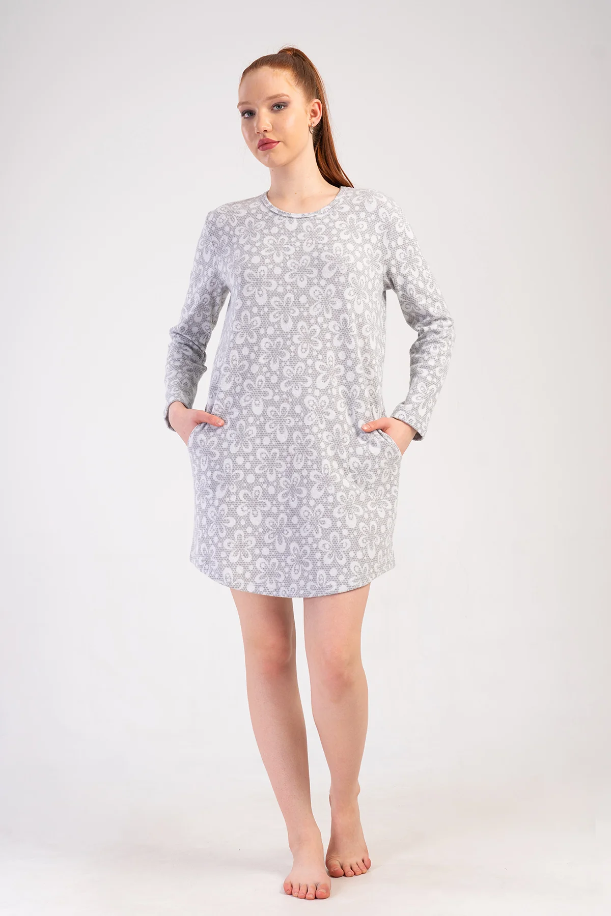 | Ürün Adı | Kadın Jakarlı Gri Desenli Cepli Uzun Kollu Gecelik Tunik |