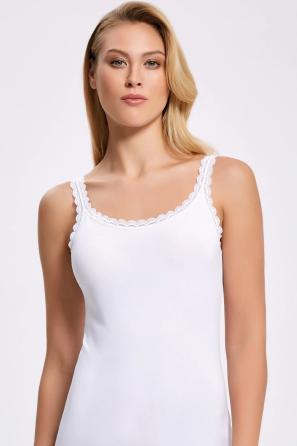 Dantelli atlet, gündelik şıklığı romantik detaylarla buluşturan, zarif dantel kenarları ve ipeksi dökümüyle hem tek parça hem de katmanlı kombinlerde kullanılan zamansız bir üst kategorisidir. İnce işçilikli dantel bordürler yakada, omuzda ve etek ucunda görsel hafiflik yaratır; gömlek, blazer, triko altında pürüzsüz görünüm sağlarken, tek başına da sofistike bir duruş sunar. Koleksiyonda V yakalı dantel, kare yaka dantel, spagetti askı dantel, straplez dantel ve dikişsiz dantel formlarını bulabilirsiniz.
