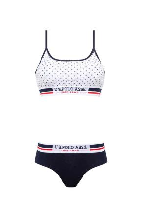 Beyaz Puanlı Kadın İp Askılı Büstiyer Şort Takım U.S. Polo Assn.
