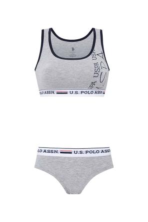 Gri Melanj Pamuklu Likralı Kadın İp Askılı Büstiyer Slip Takım U.S. Polo Assn.