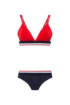 Lacivert Kırmızı Puanlı Kadın İp Askılı Büstiyer Şort Takım U.S. Polo Assn.