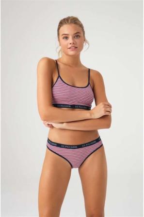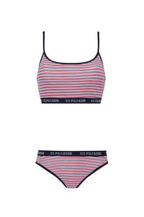Lacivert Çizgili Kadın İp Askılı Büstiyer Slip Takım U.S. Polo Assn.