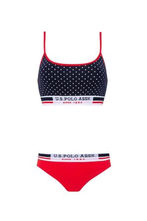 Kırmızı Lacivert Puanlı Kadın İp Askılı Büstiyer Slip Takım U.S. Polo Assn.
