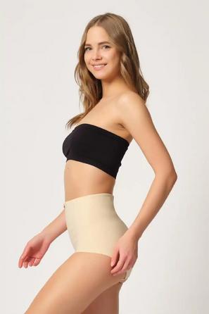 Kadın slip korse, yüksek kompresyon yerine gün boyu kullanılabilir kontrollü sıkılık sağlar; bel bandındaki silikon destek kaymayı azaltır.
