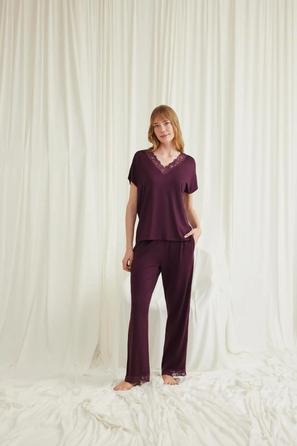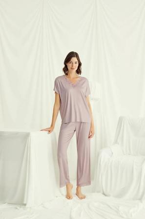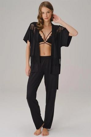 Minimalizmden vazgeçmeden renkli bir dokunuş isterseniz, düz üstü desenli pijama takımı altlarıyla karıştır–eşleştir yapabilir; sabahlıkla birlikte ev şıklığınızı pekiştirebilirsiniz.