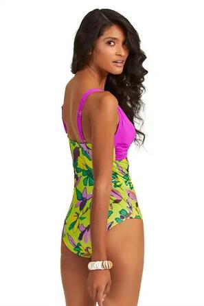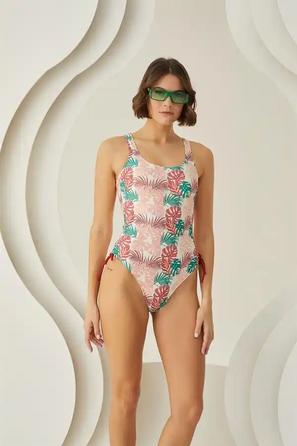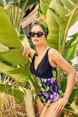Kaplı göğüs, geniş askı ve alt bant ile stabil görünüm.