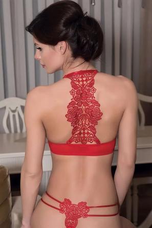 “Dantelli destekli sütyen takımı çok zarif, ince bluzda hafif dokusu seçiliyor.”