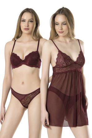 Aynı doku ve renkte külot/hipster ile tamamlanmış şık setler.