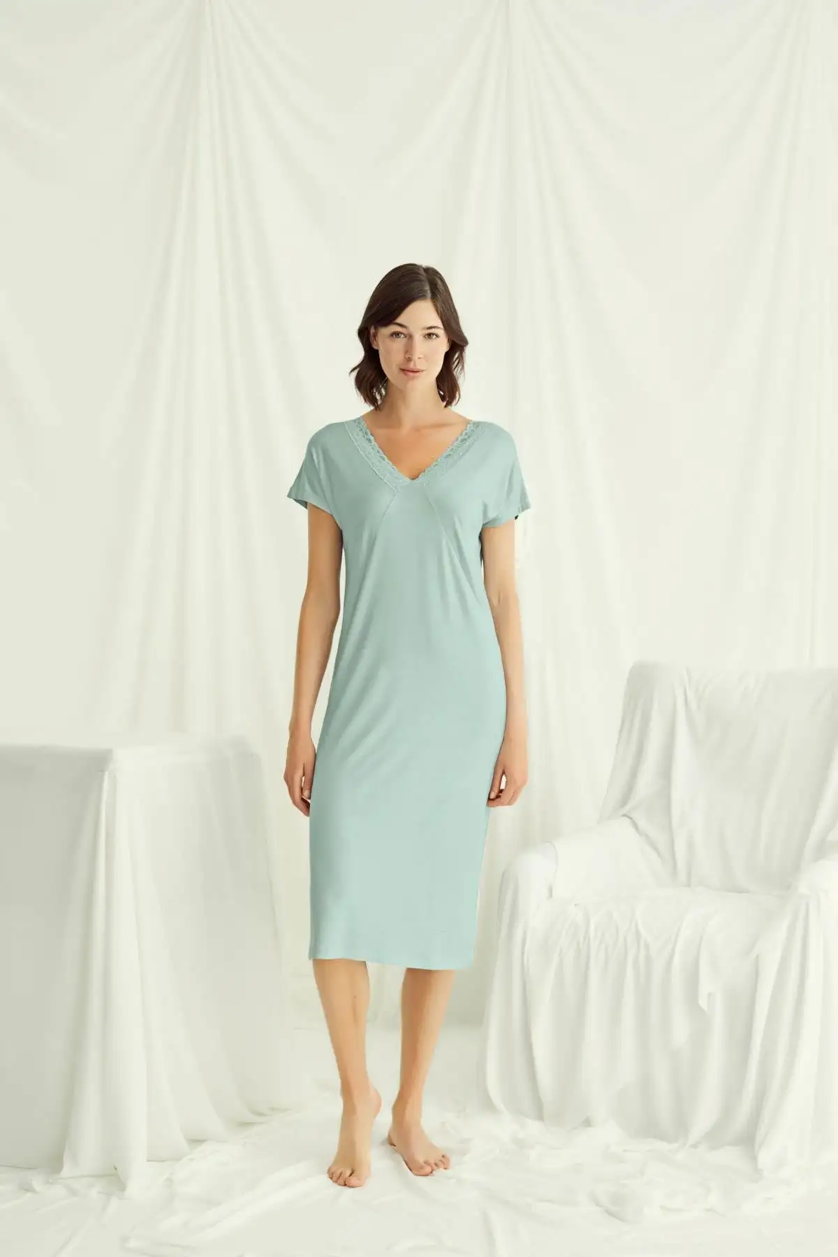 Yakası Dantelli Kısa Kollu Açık Yeşil Gecelik
