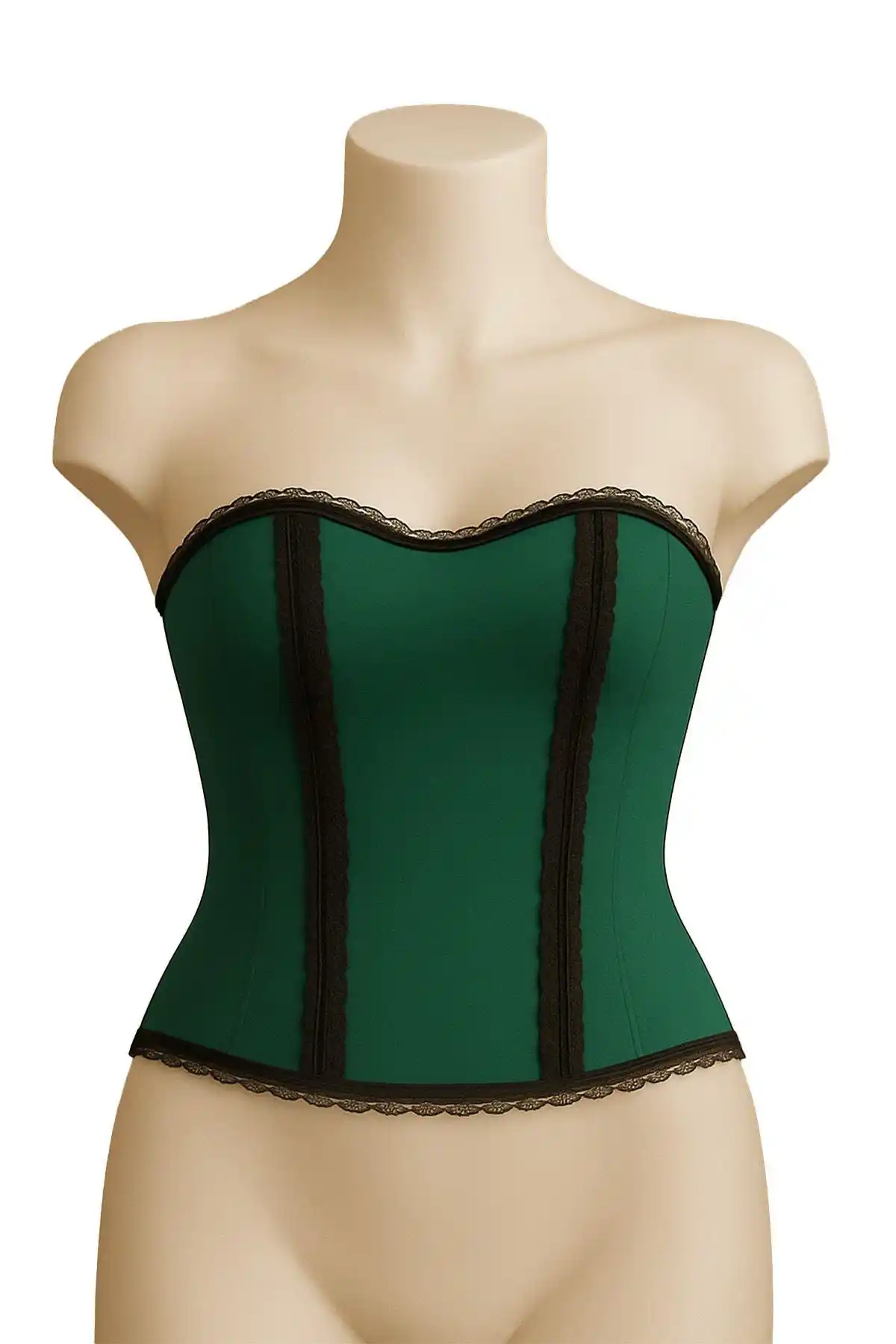 | Desen / Detay | Düz yeşil yüzey; önde dikey dantel şeritler |